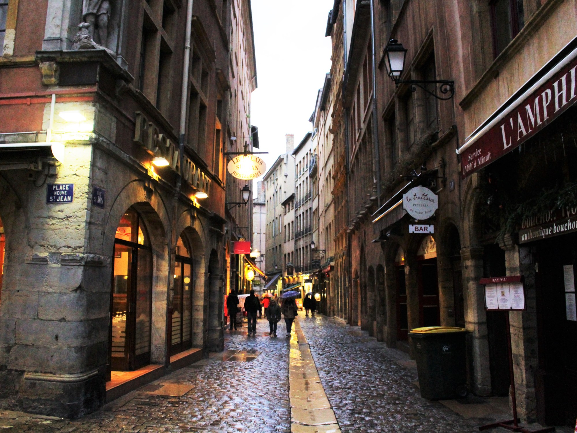 Al llegar en Lyon, fuimos al barrio Vieux Lyon (la parte vieja) donde hay varios bouchons que son un tipo de restaurante donde se sirve la comida muy tradicional y típica de la región. Hay un montón de restaurantes promocionados como bouchons, pero hay sólo unos veinte otorgados con la etiqueta de authentique bouchon lyonnais de la asociación de bouchons que mejor representan la comida de Lyon.