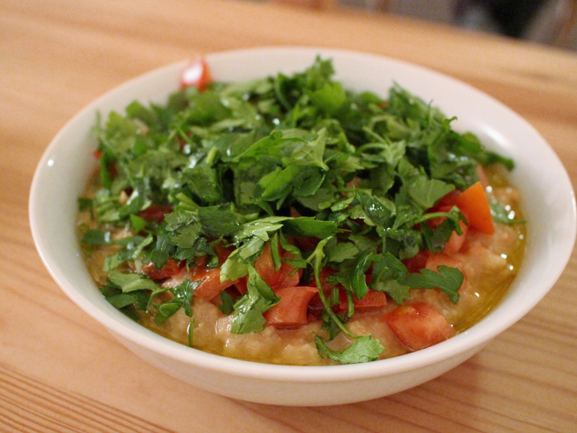 Hizo el plato de ‘foul modames’ con habas, limón, ajo, perejil, tomates y garbanzos. Fue un plato lleno de sabores muy frescos y refrescantes. ¡Qué manera estupenda para hacer arrancar un desayuno libanés!