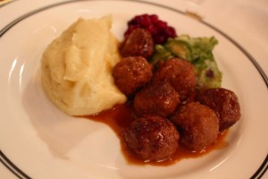 Para el entrante, pedí el plato que Aoife pidió para su plato principal – albóndigas suecas con puré de patatas, pepino al escabeche y arándanos rojos. Fue un plato bastante bien, pero nada fenomenal aunque los sabores de los cuatro ingredientes se cumplementaron el uno al otro.